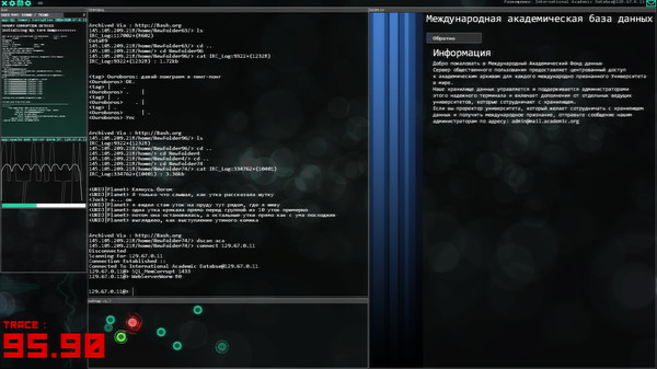 《黑客网络》是一款由Team Fractal Alligator制作组开发的现代的、超级逼真的黑客模拟类的独立游戏,一切都按照真实的网络界面和终端驱动,玩家需要用键盘打出相对的指令才能促使游戏进度前进。