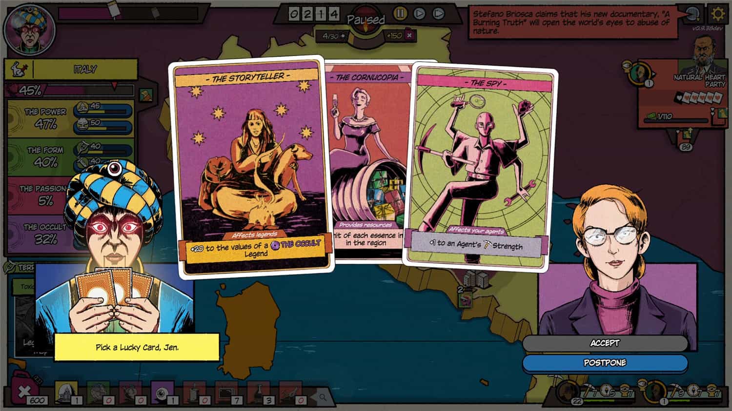 《The Fabulous Fear Machine》是一款带有通俗恐怖风格的叙事类策略游戏。作为恐怖机器的新主人,你必须通过打出传奇卡牌、收集资源、解决模拟中的事件以及监视敌人来散播恐惧,并扩大自己的影响力。